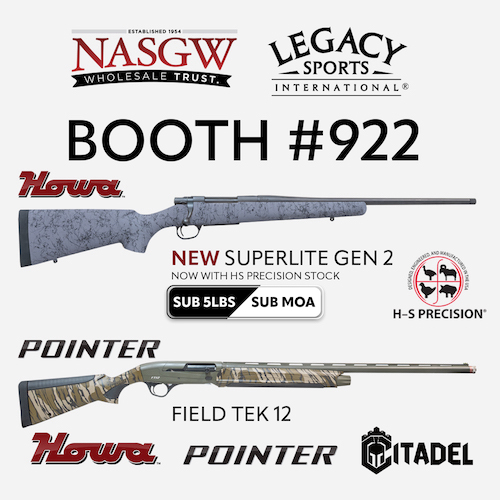 Legacy Sports International, producer of exceptional firearms and accessories for the everyday shooter will be showcasing its exciting lineup of new products from brands Howa, Pointer, SCSA and Citadel at the NASGW 2025 Expo in Grapevine, Texas - October 15-17, 2025.
