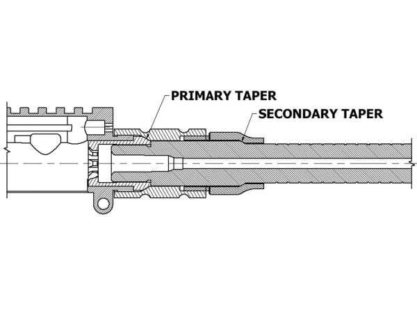 The DTL system harnesses the power of taper locks to secure and center the barrel. Tapers are highly used across various industries to lock two critical surfaces together because of the incredible frictional forces they generate when mated. In the DTL system, Blackout Defense designed two areas of mating 60 degree tapers: on the barrel extension and primary barrel nut; and on the barrel profile and secondary barrel nut. These two tapers bring the barrel to center with the upper bore and substantially reduce harmonic vibration - which in turn improves barrel precision and accuracy. The DTL system also prevents barrel un-torquing, and provides an exceptionally rigid platform for handguard mounting.