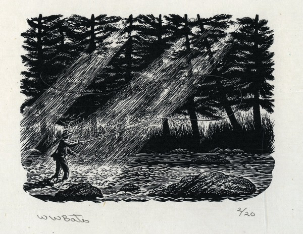 The exhibit features 34 wood engravings by a trio of artists: Barry Moser, Wesley W. Bates, and Chris Wormell, all featured in the books A River Runs Through It by Norman Maclean, Home Waters by John Maclean, and the 100th anniversary edition of Ernest Hemingway’s Big Two-Hearted River. The illustrations capture the central truth of each of these famous fish stories – that the solitary fisherman is never alone. They recall the hands that tied the intricate flies, conversations with family members and friends no longer here, and places where lasting memories are made. Maclean family memorabilia and a special exhibit on historic fishing will be displayed alongside the artwork.