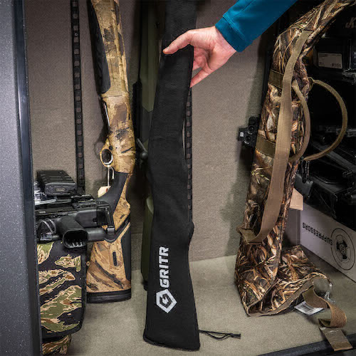 GRITR Gun Socks are designed to shield rifles and shotguns from dust, moisture, and scratches during storage or transport.
