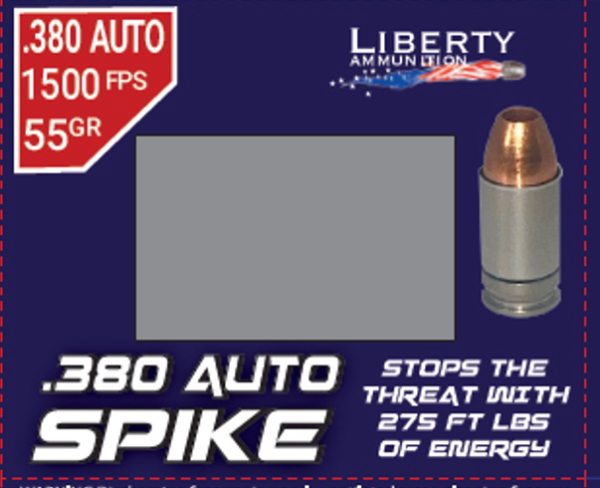 Gary Ramey - CEO of Liberty Ammunition added: “SPIKE was borne from a LE/military round that we developed. We feel the consumer should have access to this special patent-pending design as well. The 9mm is another option to OverWatch and Civil Defense. But If you carry a .380, you finally have firepower to defend yourself with SPIKE.”
