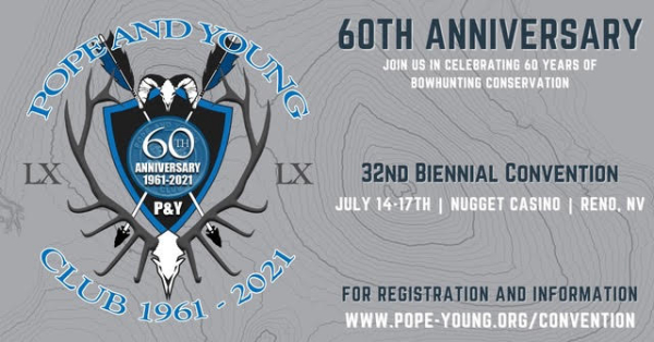 Visit www.pope-young.org/convention for more information or to register to attend the 60th Anniversary Convention of the Pope & Young Club – an event you will not want to miss.