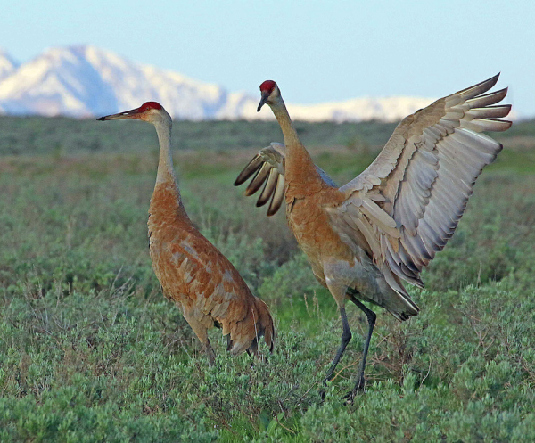 Sandhill cranes are unique birds. They perform unique dancing and courtship rituals and then choose the best-performing bird as their mate. The birds typically lay two eggs in the spring, and the parents and juveniles spend the first winter together and then separate the following spring.
