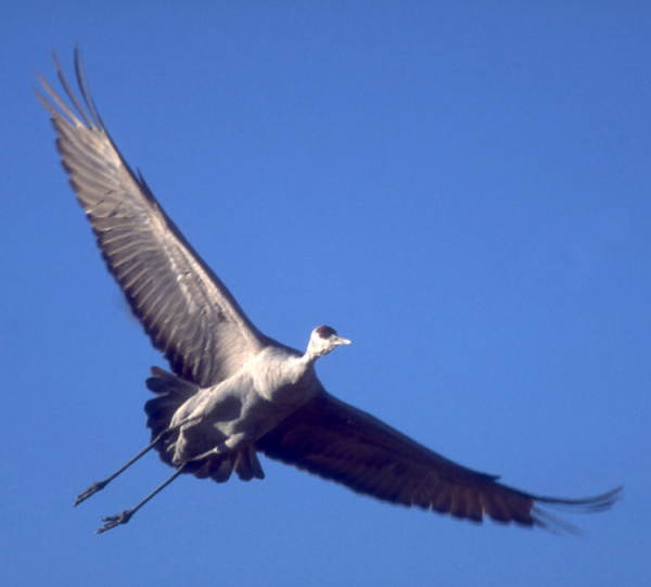 Cranes use their extra-long legs as defense mechanisms, often kicking violently when attacked and threatened by predators. During the winter months, the cranes flock to fields, pastures, grasslands and wetlands before returning to roost along riverbanks and shallow lakes at night.