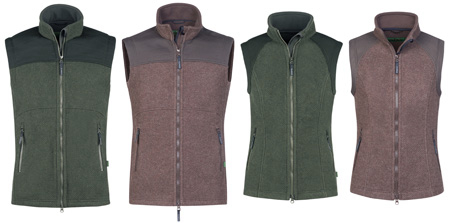 Designed in the latest soft-shell technic membrane wool, the new vests are incredibly breathable and lightweight with an attractive knitted look. The super-soft fleece on the inside provides both comfort and warmth. Discerning details like two zip pockets, two internal pockets, a chin protector and a two-way zip add an additional touch of sophistication to the vests. There are padded shoulder sections on both styles to guard against abrasion from a rifle sling or backpack. An anti-piling finish will keep the vests looking spectacular even after years of hard wear.