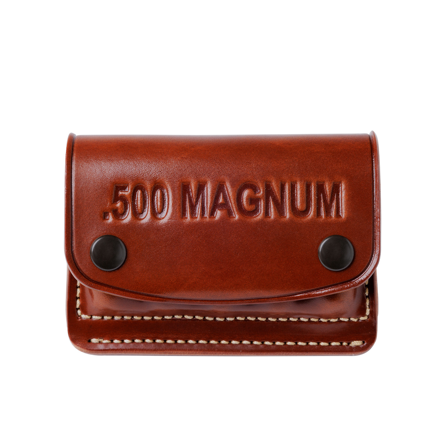 The 1x5™ Ammo Carrier is a belt slide cartridge carrier that holds five large-caliber revolver rounds for easy access. The cartridges are divided for easy speed or tactical reloading. The updated design uses belt slots, can be used as a quick on-off design by simply sliding the flap under one's belt and snapping it closed, or can be attached to the Great Alaskan Chest Holster with the included Chicago screws.